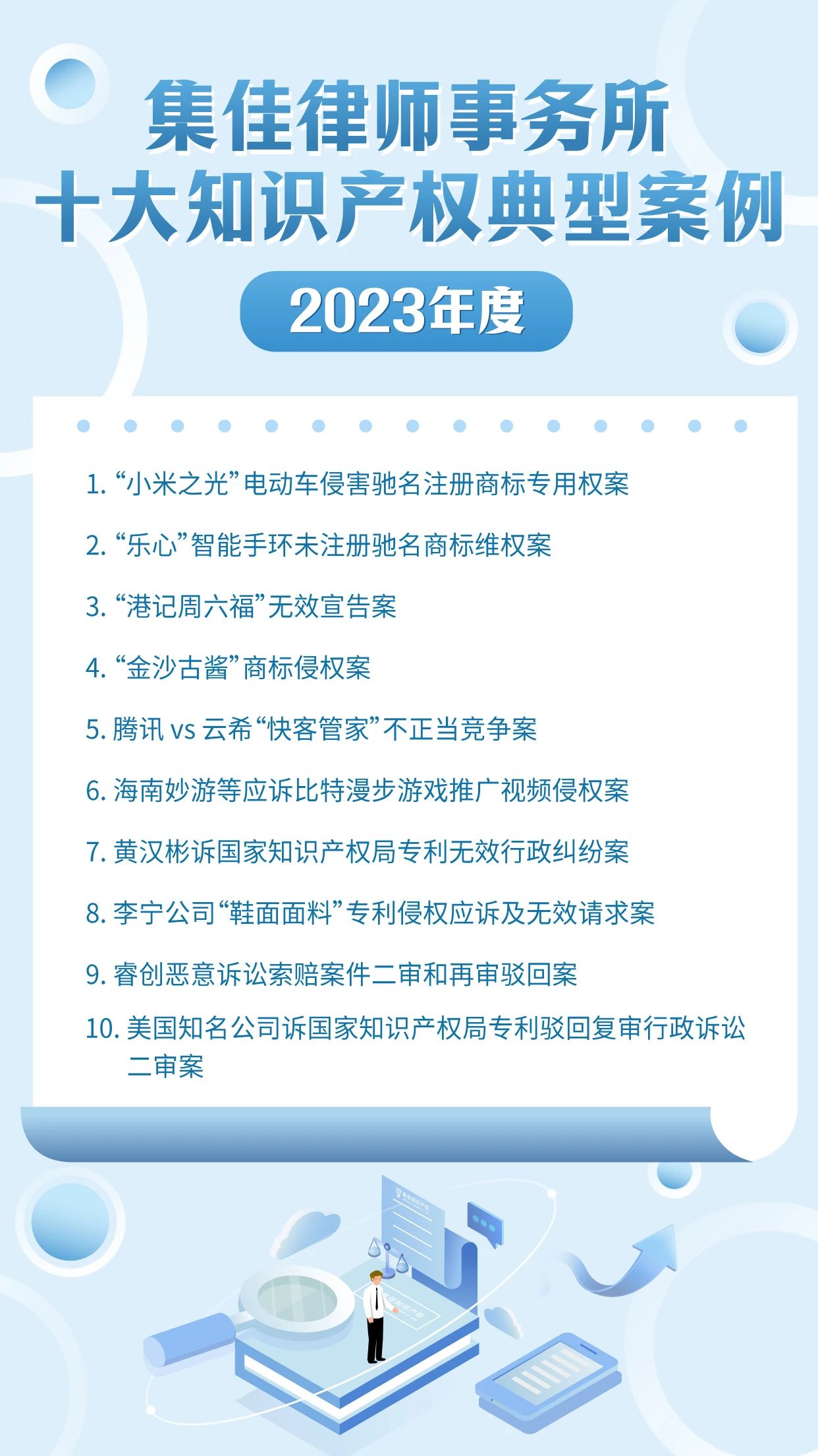 作为迎接4.26世界知识产权日的献礼之一,球友会已连续十年开展十大知识产权典型案例的评选活动,其意义不仅在于展现集佳律师团队的专业能力和水准,更在于传递集佳全方位服务客户的理念。在第24个世界知识产权日来临之际,球友会从2023年度代理的众多知识产权案件中筛选出具有代表性的十大案例,与各界同仁分享: